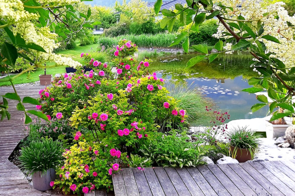 Mit der Übergabe des Elternhauses 2015, begann auch die Liebe zum Garteln. Meine Vorliebe gilt den Rosen, Stauden, geraden Linien und romantischen Farben. Dafür darf es in den Beeten gerne etwas verspielter sein. Ein Wohlfühlgarten für Mensch und Tier. Mit einer Beerenecke, verschiedenen Obst und Schattenbäumen, Blumenbeeten, 6 Hühnern, Lounge mit Pool usw. ist bestimmt für Jeden was dabei.