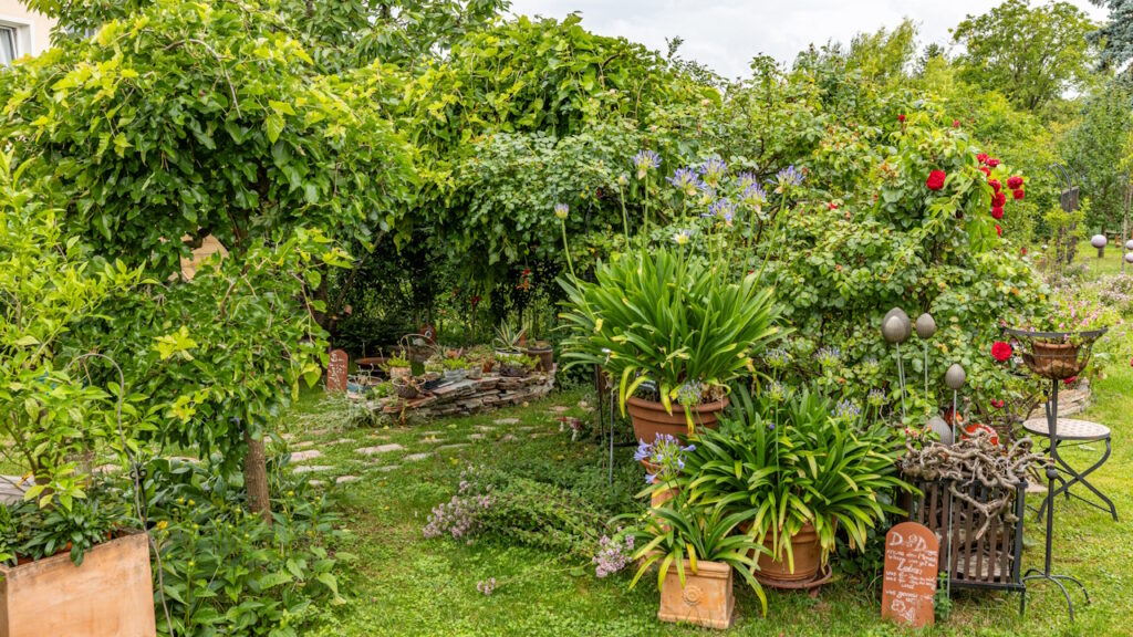In unserem kleinen feinen Garten sind fast das ganze Jahr über blühende Blumen, Stauden, Sträucher oder Bäume zu sehen, oder frei nach Karl Förster, es wird bei uns durchgeblüht. Mehrere Sitzplätze laden zum Verweilen und Entspannen in unseren Garten ein. Die Winterzeit verbringen wir in unserem Keramikatelier, dort widmen wir uns der Gartenkeramik.